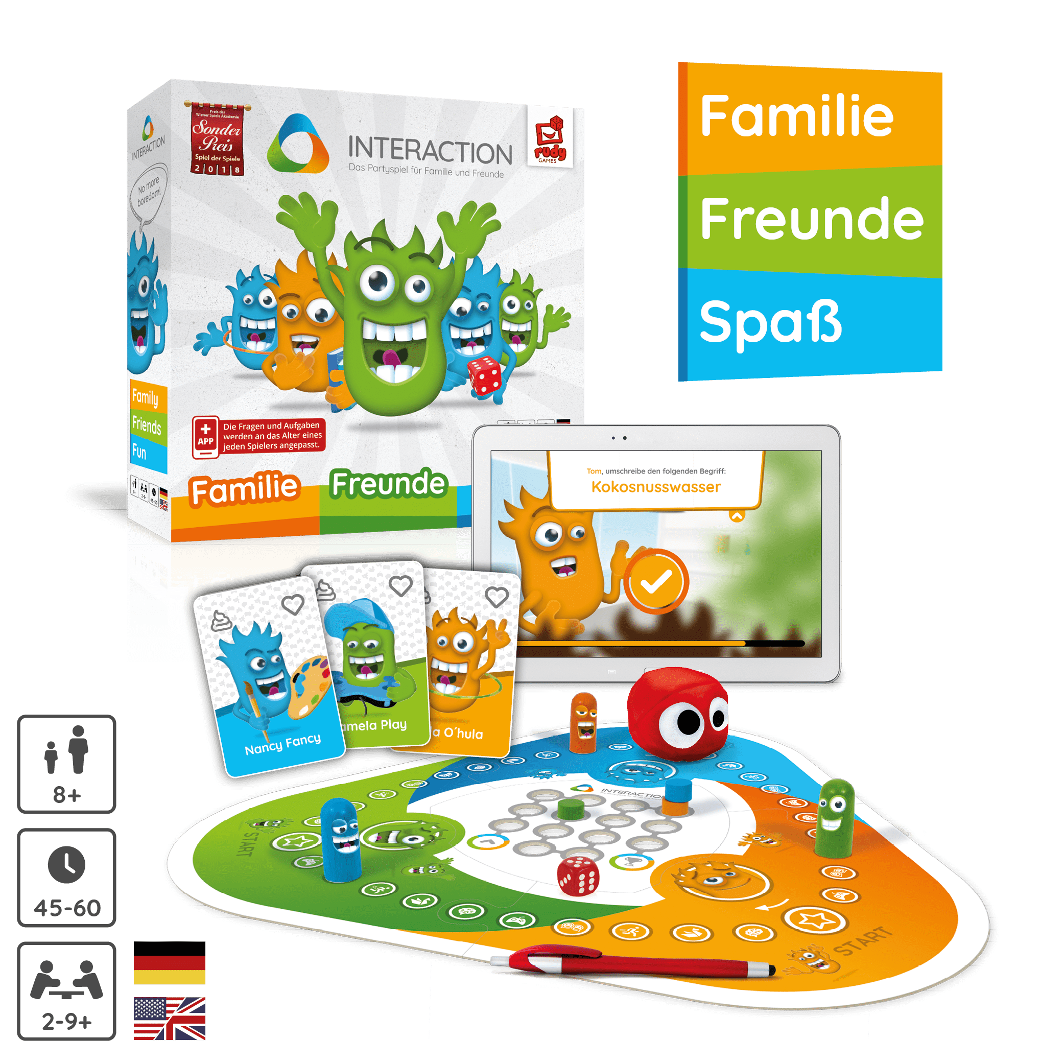 Interaction – Das interaktive und völlig verrückte Partyspiel. Egal ob Intelligenzbestie oder Sportskanone, egal ob Alt oder Jung, hier sind alle Sinne und Talente gefragt. Nur wer die Aufgaben in den Bereichen Wissen, Kreativität, Action, Social und Games am besten meistert, wird am Ende der glückliche Sieger sein.