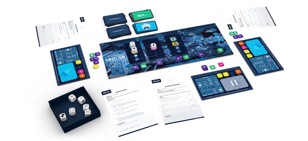 Eine Geschichte zu erzählen, ist nicht immer einfach. Doch mit Untold werden sogar die unkreativsten Köpfe zu wahren Meistererzählern. Basierend auf dem Prinzip der Story Cubes leitet Untold die Spieler mit clever abgestimmten Story-Karten durch die Geschichte und gibt leichte Vorgaben, welche Würfel platziert werden können. Dabei bleibt die eigentliche Erzählung aber immer den Spielern überlassen, ob verwunschenes Märchen oder actiongeladene Science-Fiction-Story.