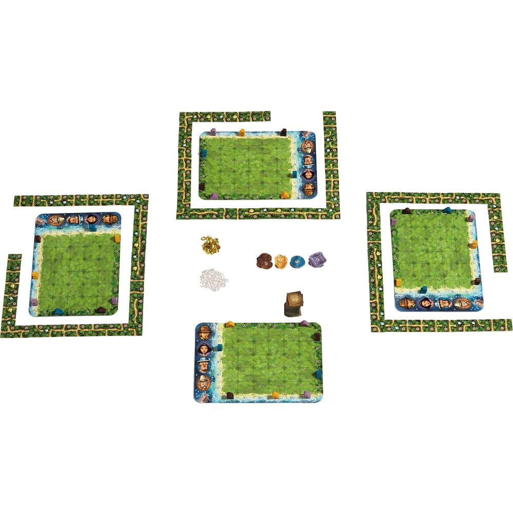 Inhalt: 4 Inseln, 64 Kristalle, 16 Goldnuggets, 16 Tempelschätze, 16 Abenteurer, 16 Tempel, 144 Dschungelplättchen, 1 Spielanleitung.