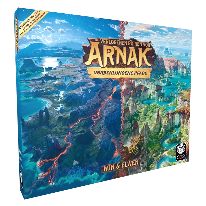 Die dritte Erweiterung Die verlorenen Ruinen von Arnak: Verschlungene Pfade enthält ein neues doppelseitiges Spielbrett und bringt die Spielenden zum Spinnentempel oder Eulentempel. Diese haben jeweils einzigartige Mechanismen und Komponenten, wie brandneue Tempelplättchen und neue Ressourcen.