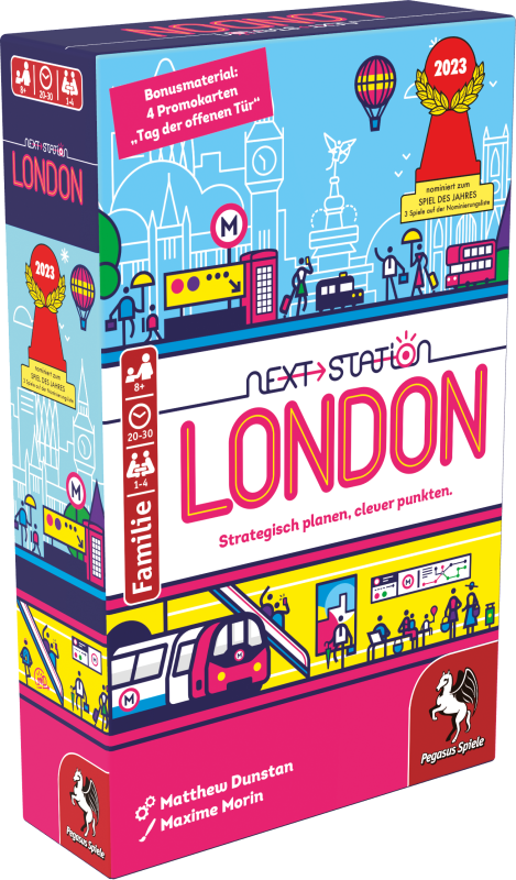 Bei Next Station: London erwartet die Spielenden ein spannender Wettbewerb: Wer schafft es, die Pläne der London Underground neu zu gestalten und dabei die herausfordernden Kriterien zu erfüllen? Dazu müssen strategisch geschickt neue Underground Linien entworfen werden, das bringt Punkte. Wer zum Schluß die meisten Punkte gesammelt hat, wird den Wettbewerb für sich entscheiden! Ein Solomodus ist auch enthalten.