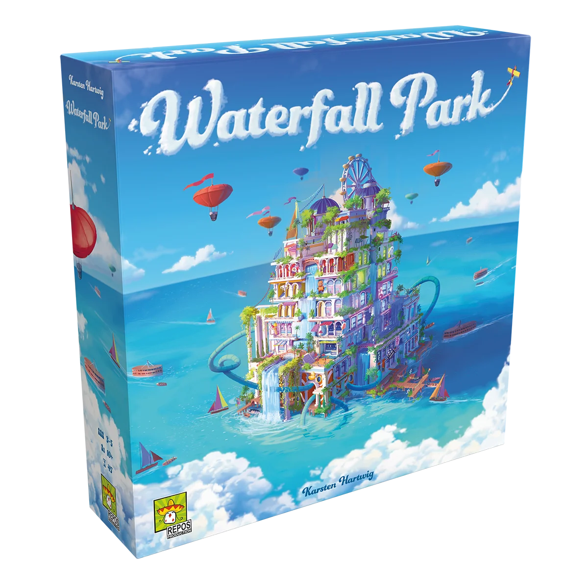 In Waterfall Park entwerfen die Spielenden Attraktionen für den erstaunlichsten Vergnügungspark aller Zeiten. Aber reicht der Platz für alle eigenen Ziele aus? Alle planen die eigenen Installationen und tauschwn Bauplätze, Attraktionen oder Münzen.