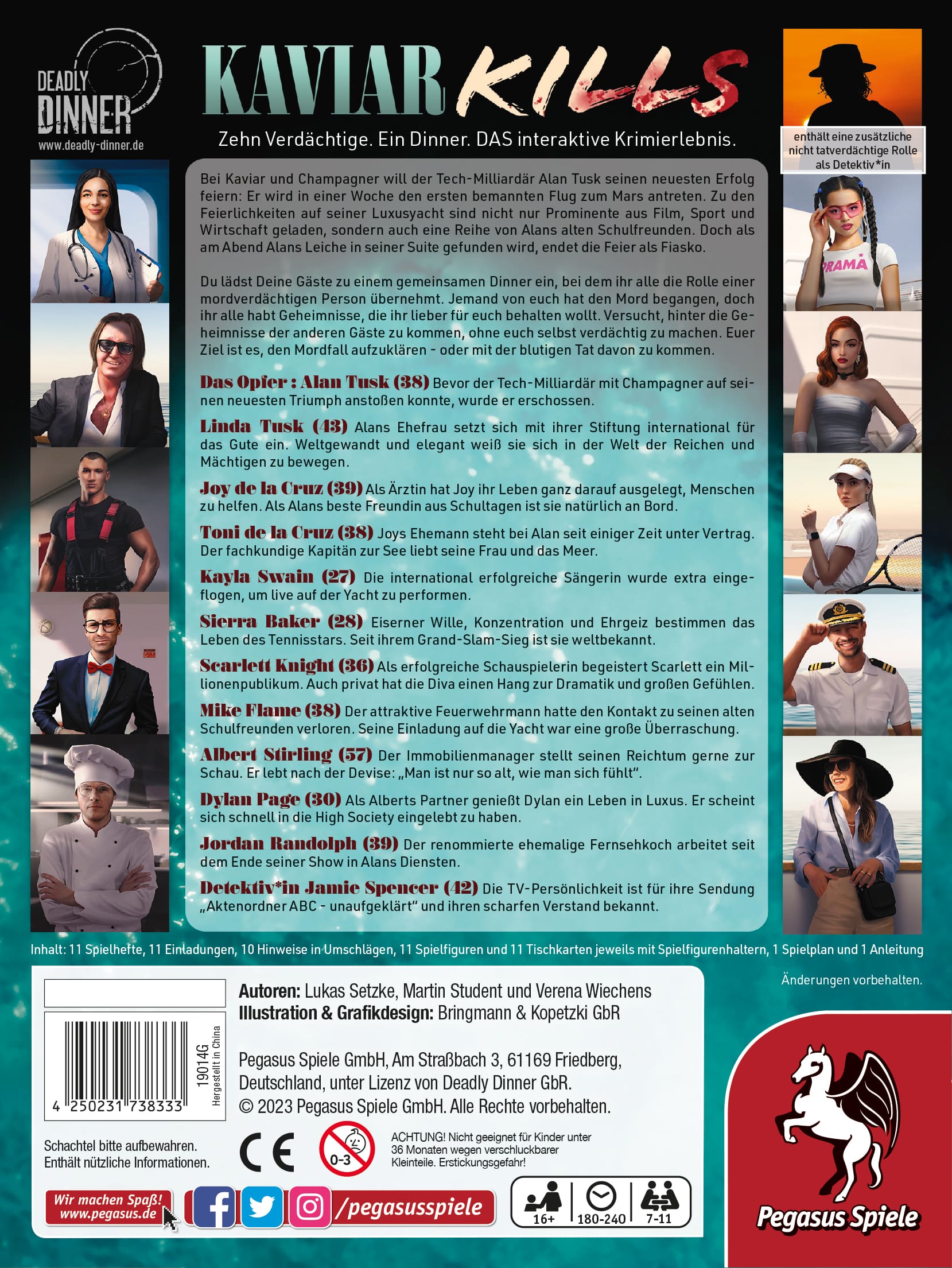 In Deadly Dinner – Kaviar Kills kann außerdem eine Person die Rolle des nicht tatverdächtigen DetektivIn übernehmen. Zur Vorbereitung sollten die Spielenden die Startinformationen zu ausgewählten Charakteren ein paar Tage vor dem Spielen erhalten.