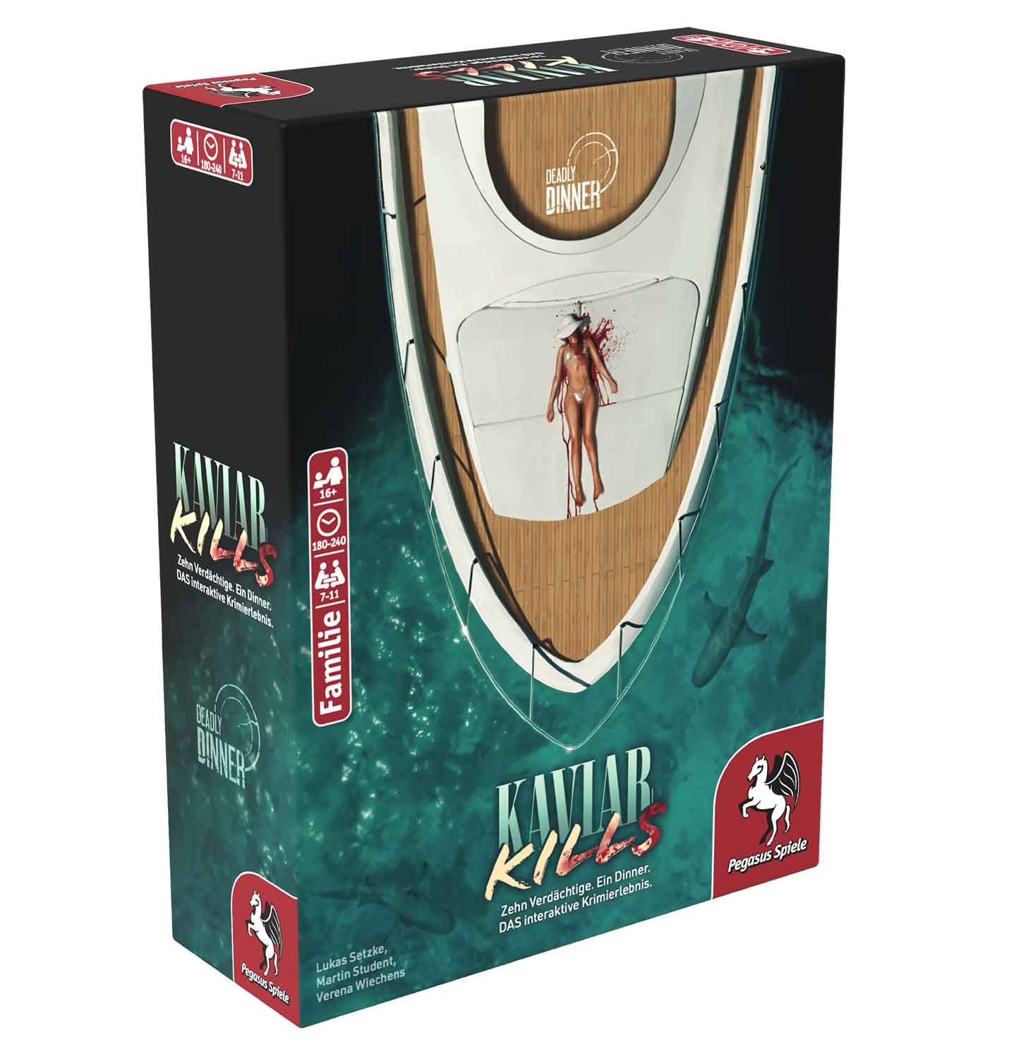Bei Deadly Dinner - Kaviar Kills werden die Mitspielenden vom Gastgebenden als Gäste zu einem gemeinsamen Dinner eingeladen und übernehmen die Rollen von Mordverdächtigen. Denn jemand von ihnen hat den Mord begangen... Doch alle haben Geheimnisse, die sie lieber für sich behalten wollen.