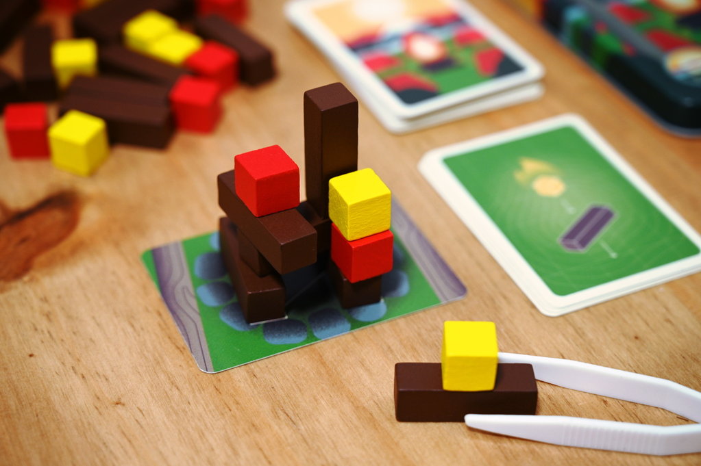 Bei Tinderblox versuchen die Mitspielenden durch geschicktes Anlegen ein Lagerfeuer zu vergrößern. Doch wer die Blöcke falsch platziert riskiert, das Lager abzufackeln.
