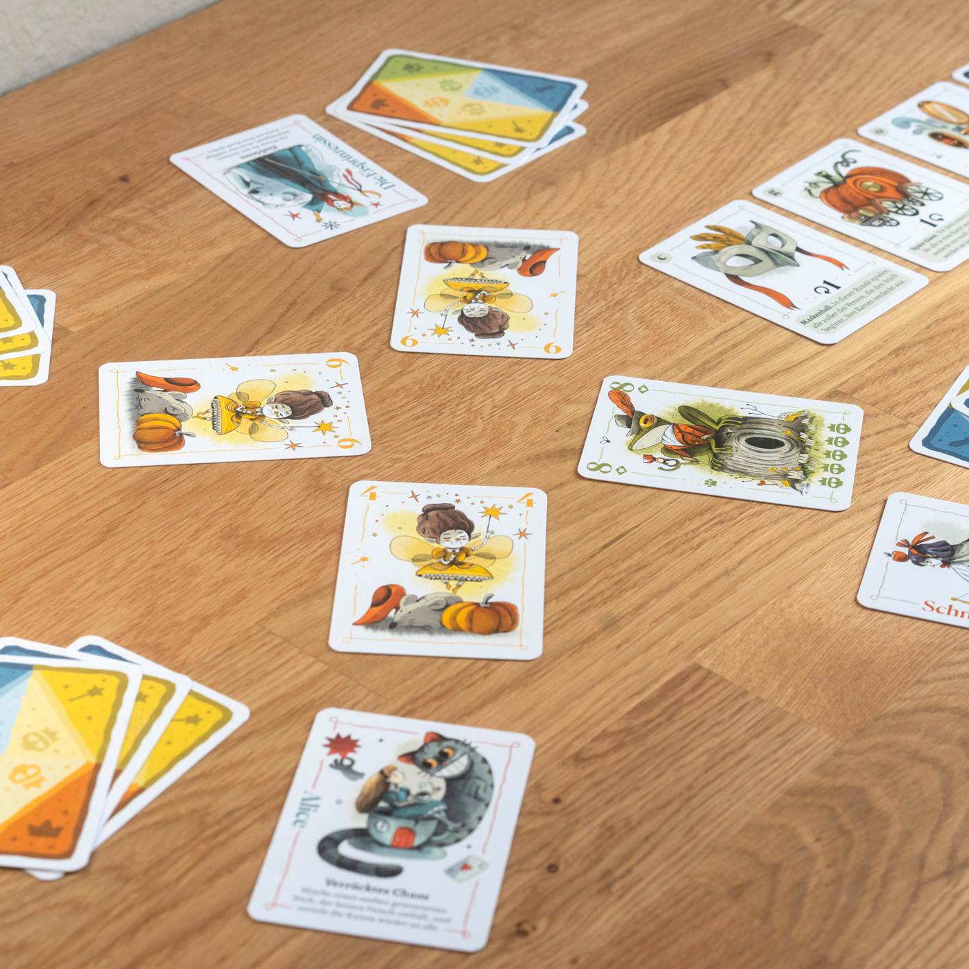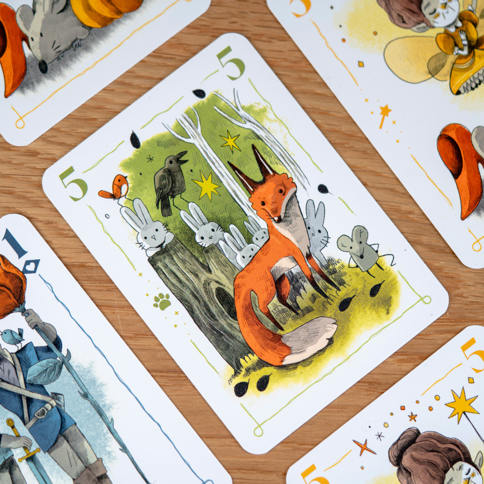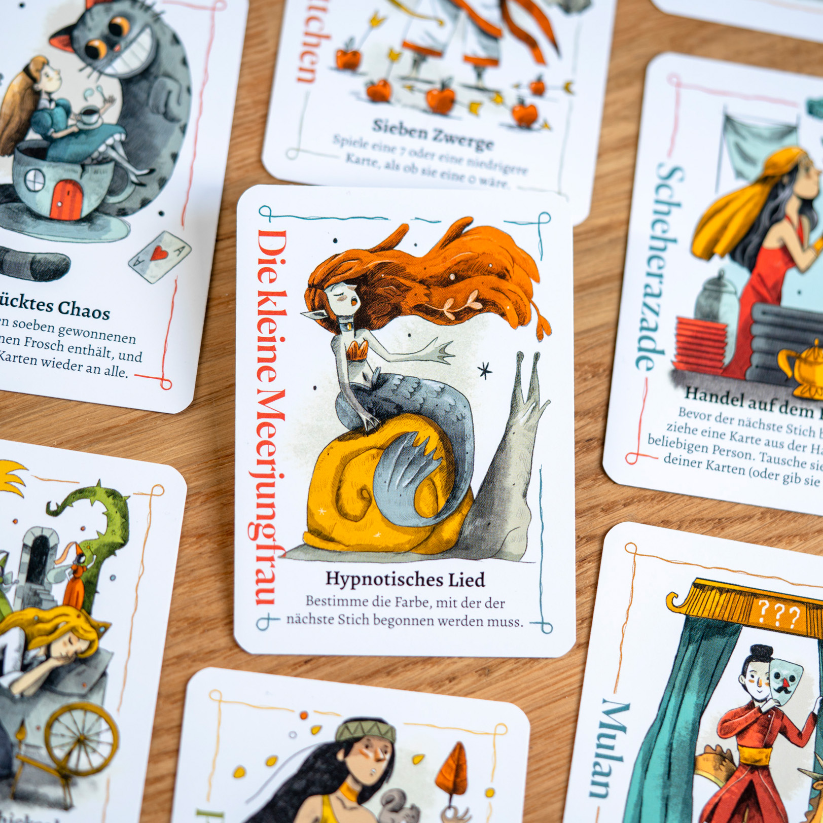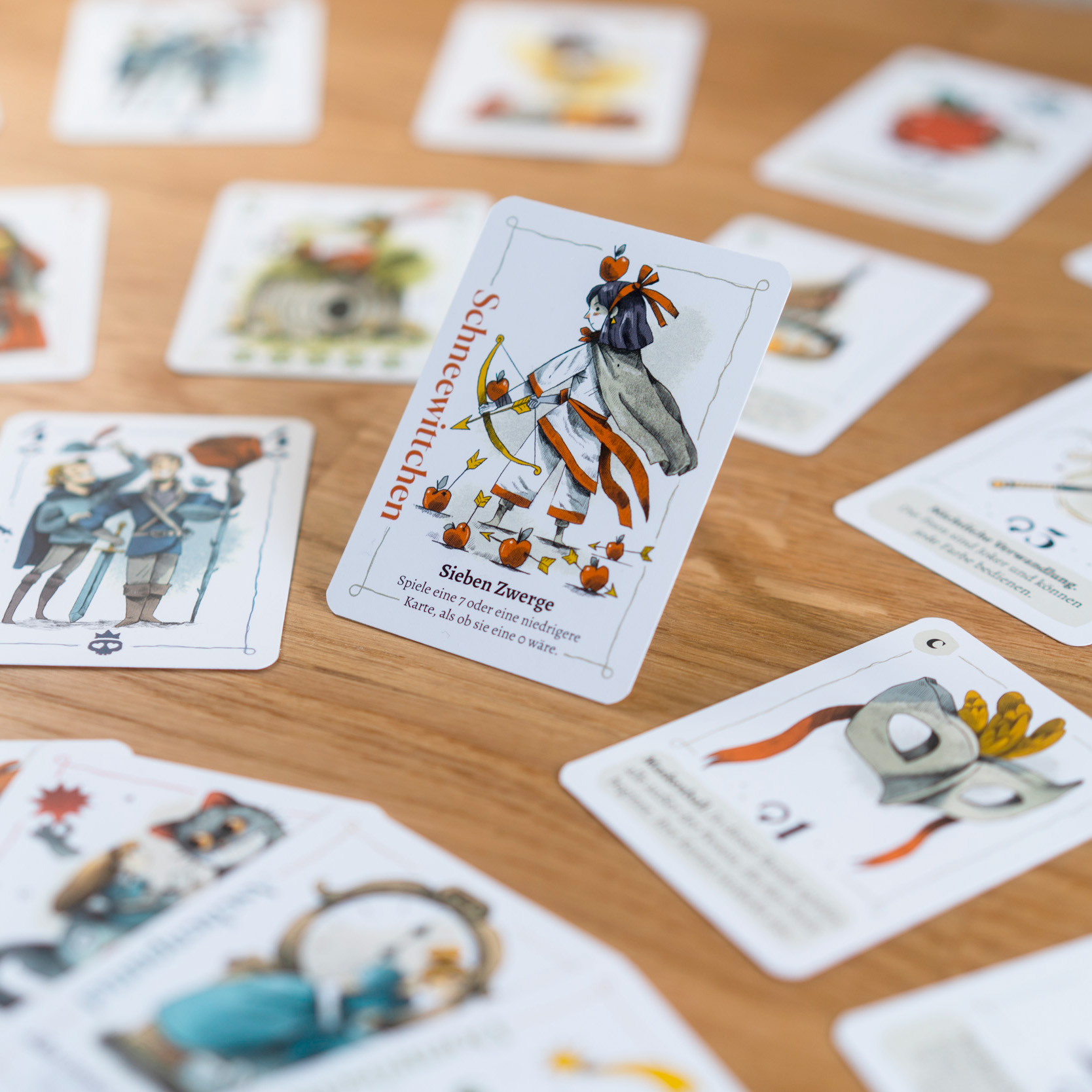 Rebel Princess ist in 5 Runden unterteilt, und in jeder Runde gibt es eine neue Regel, die jedes Spiel anders macht. Das Spielprinzip ähnelt dem eines Stichspiels, bei dem jede Person in jedem Stich eine Zahl ausspielt, die einer der 4 Farben (Feen, Königinnen, Tiere und Prinzen) entspricht. Die Person mit der höchsten Zahl in der Farbe, die den Stich begonnen hat, sammelt alle Karten des Stichs ein. Aber Vorsicht! Ihr müsst vermeiden, Karten mit Prinzen zu sammeln, von denen jeder einen Heiratsantrag bringt, während der verzauberte Frosch sogar 5 Anträge bringt. Dabei verfügen die Märchenprinzessin über eine besondere Fähigkeit. Die Person mit den wenigsten Anträgen gewinnt das Spiel.