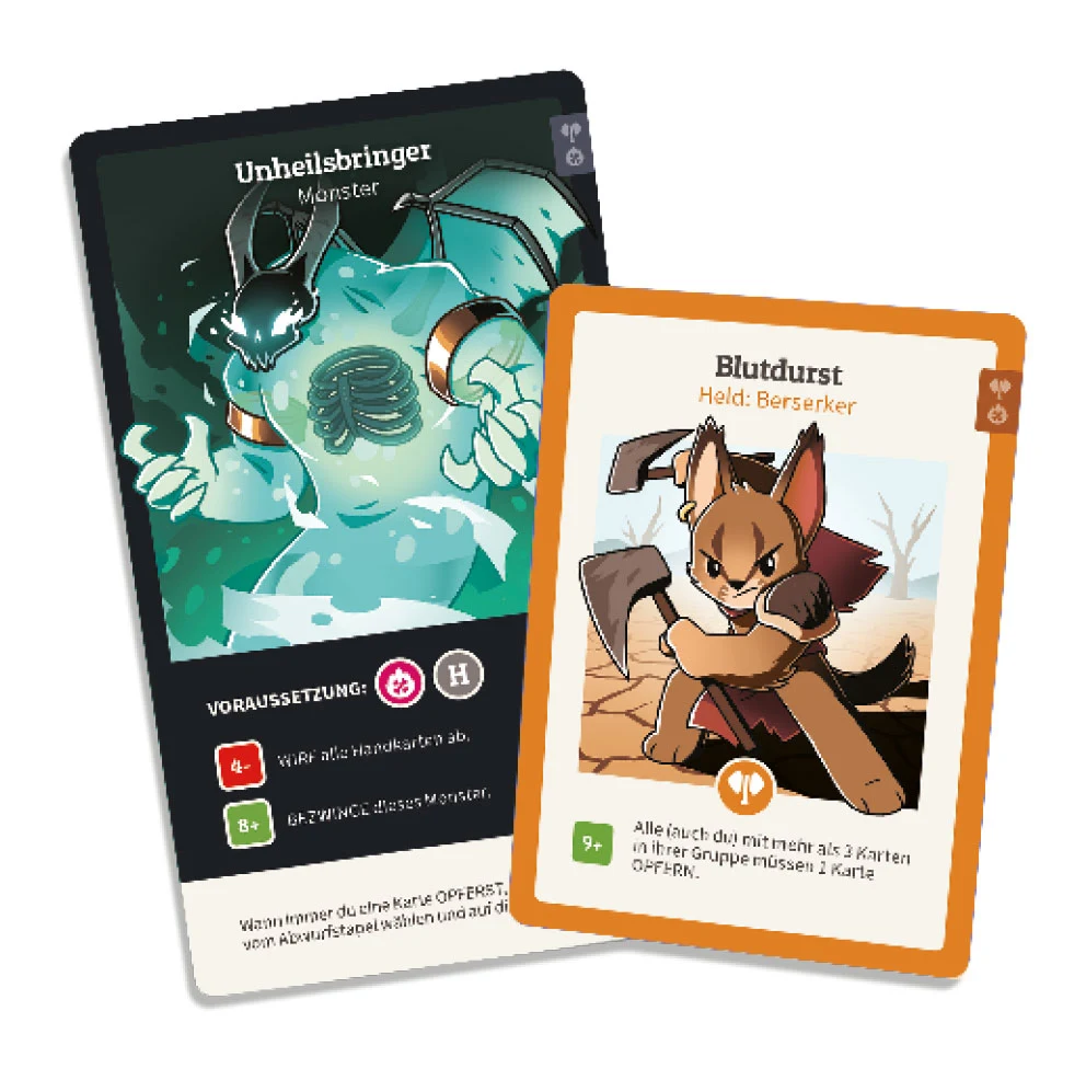 Mit der Erweiterung Here to Slay – Berserker & Nekromanten kommen zwei neue Klassen als Ergänzung zum Grundspiel dazu: Berserker und Nekromanten. Berserker sind wahre Kampfmeister, die mit extremer Stärker und Nekromanten üben sich in dunklen Ritualen