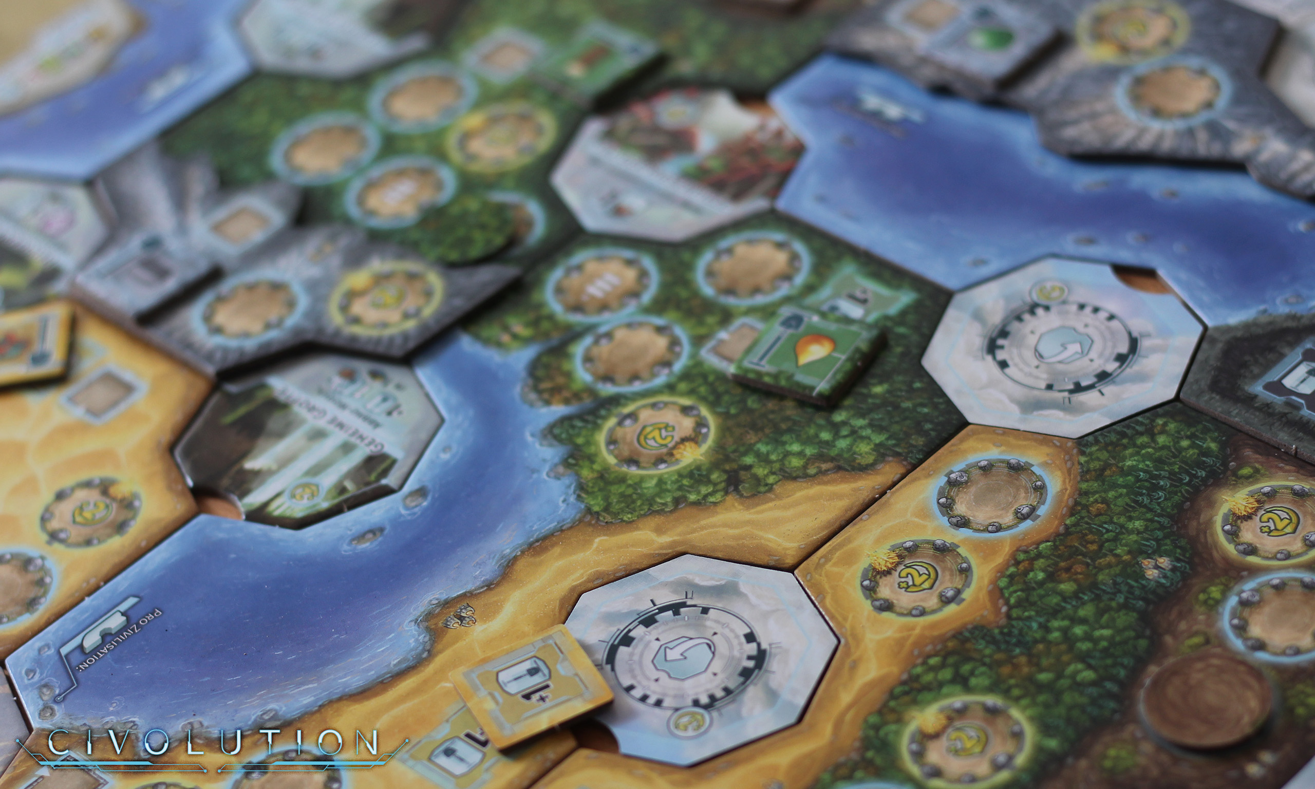 Civolution ist ein mittelschweres bis schweres Euro-Style Spiel mit einem sehr hohen Wiederspielwert.