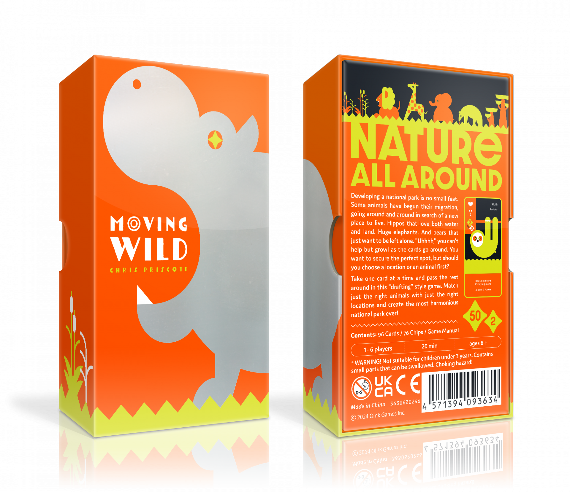 Im Spiel Moving Wild bauen die Spielenden ihren eigenen Nationalpark und das ist gar nicht so einfach. Tiere streifen bereits in Scharen auf Heimatsuche umher. Flusspferde, die Wasser wie auch Land lieben; riesige Elefanten; Bären, die nur Ruhe wollen.... Und so reichen die Spielenden ihre Karten an den nachsten Mitspielenden weiter. Jeder will sich natürlich das ideale Gebiet sichern, aber wäre ein Tier nicht doch besser?