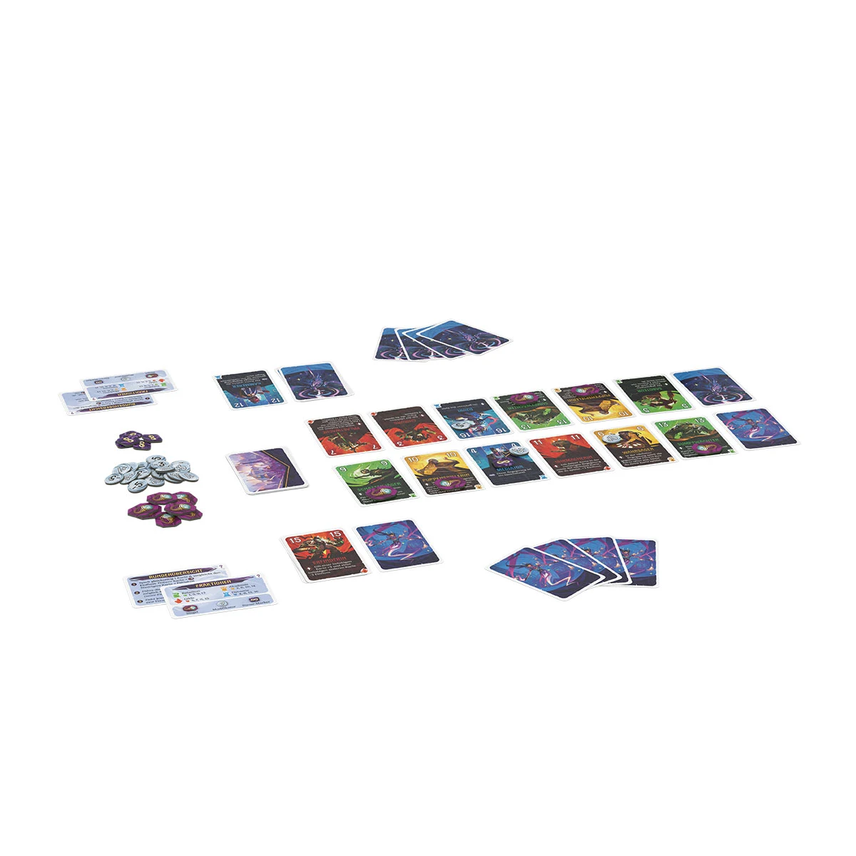 Inhalt: 76 Karten, 40 Plättchen, 1 Spielanleitung