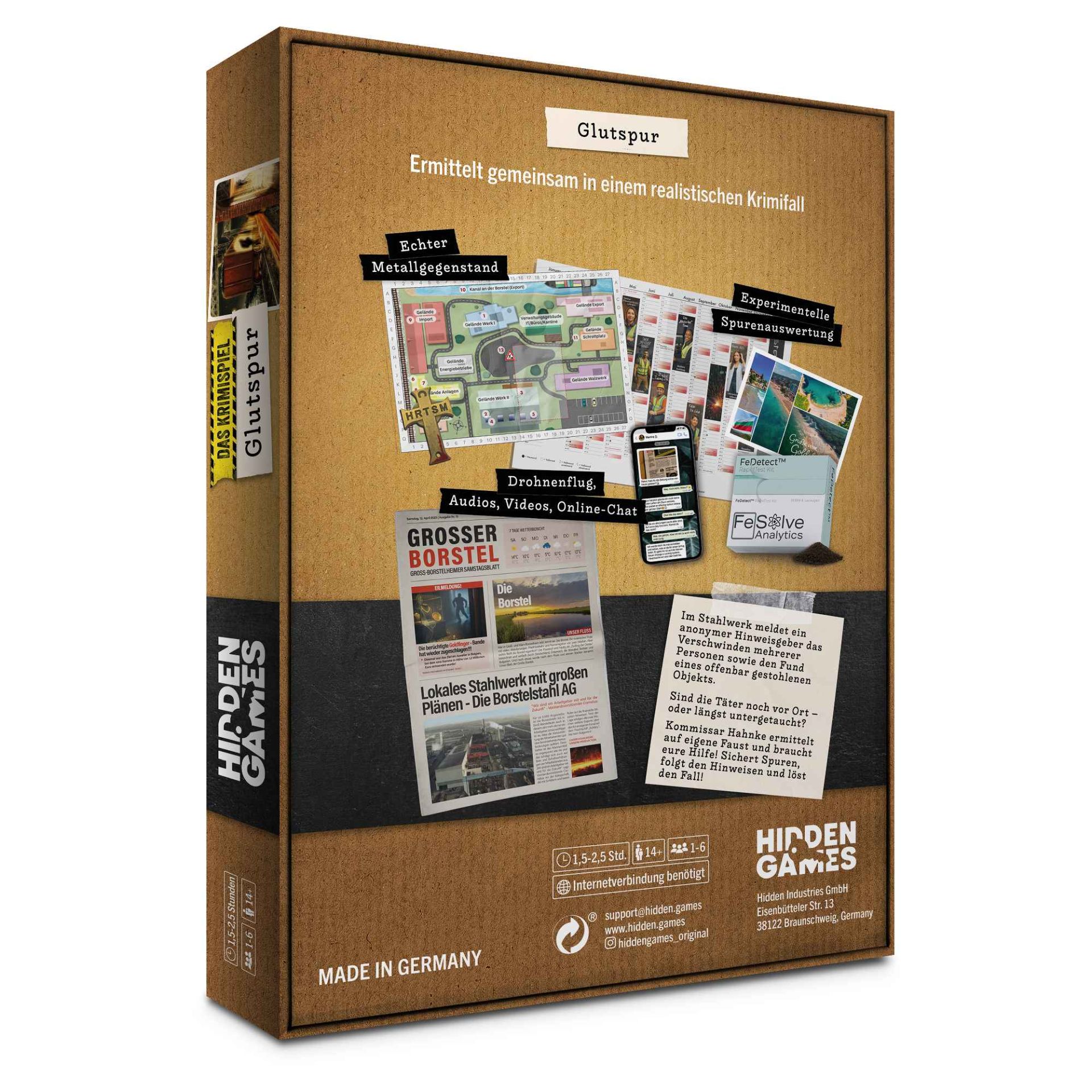 Hidden Games Tatort: Glutspur bringt die Spielendenzum Stahlwerk Klein-Borstelheim, denn dort tauchen gestohlene Goldwaren auf. Und dann verschwinden auch noch mehrere Mitarbeitende des Stahlwerks spurlos. Doch die restliche Belegschaft hält dicht. Wer hat was zu verbergen? Kommissar Hahnke tappt mal wieder im Dunkeln und benötigt ein weiteres Mal Hilfe von den Mitspielenden.....