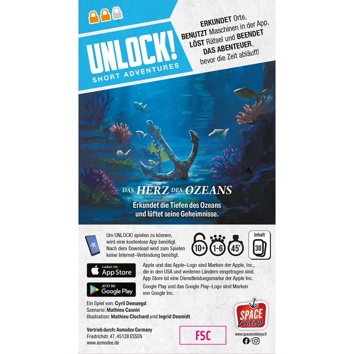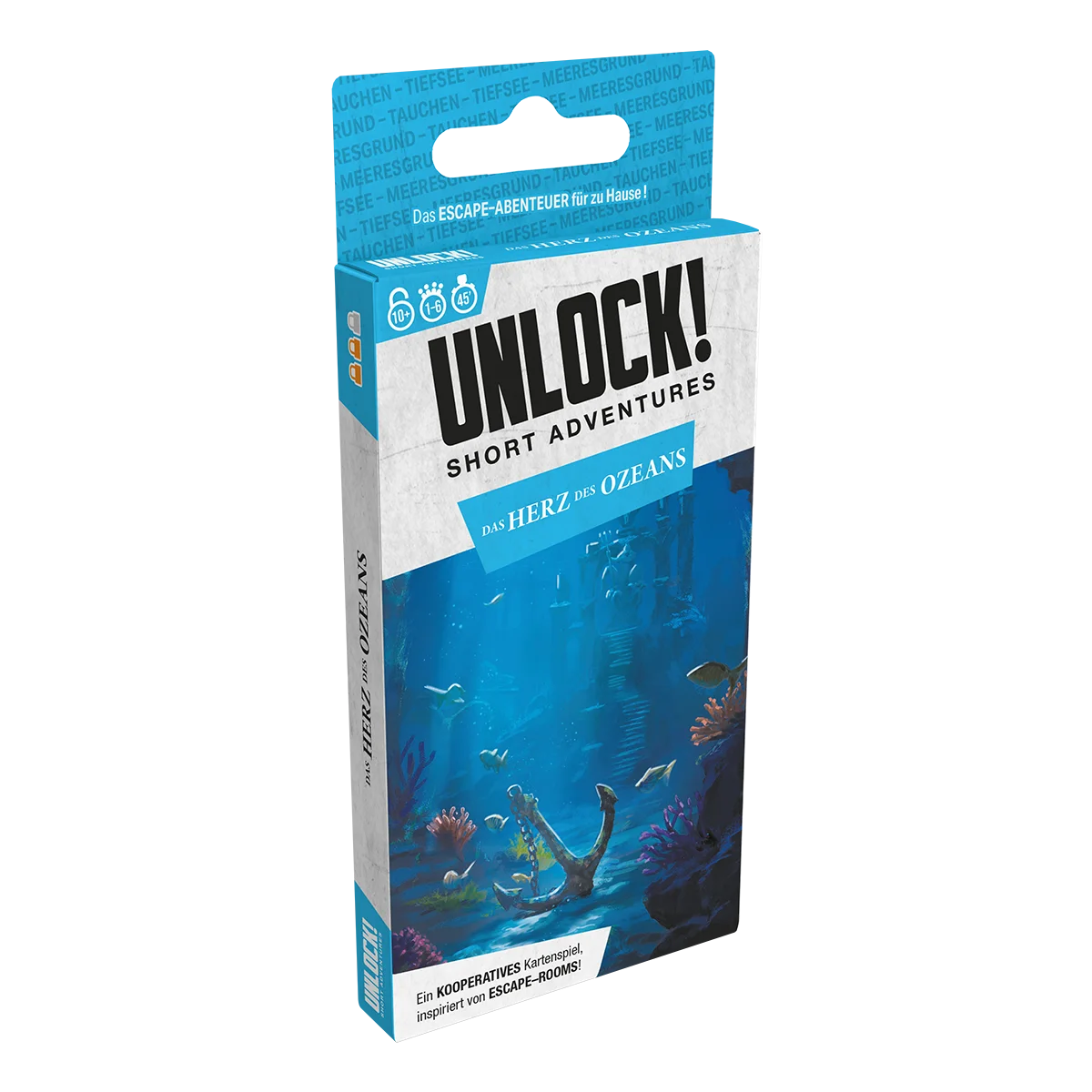 In Unlock! Short Adventures: Das Herz des Ozeans erleben Rätselfans den ganzen Spielspaß von Unlock! in einer kürzeren, aber genauso aufregenden Version. Die Unlock! Short Adventures bieten den vollen Unlock!-Rätselspaß und sind dank der handlicher Verpackung ideal zum Mitnehmen.