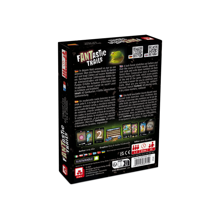 Bei Fantastic Trails übernehmen die Spielenden die Rolle von Ameisen, die im Wald in einer Welt voller Taktik und Abenteuer unterwegs sind. Über drei Runden werden Karten aufgefdeckt und tragen Zahlen auf dem eigenen "Waldboden" ein. Durchgehende Zahlenreihen bilden lange Ameisenstraßen die am Ende Punkte bringen und erfüllte Aufgaben erleichtern den Straßenbau.